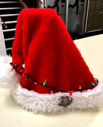 Neil Gillon in a Santa hat, Rod Mundy in a winter toque and Michael Taylor-Noonan in a green and white winter-thrmed sweater .