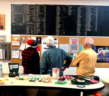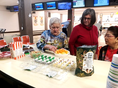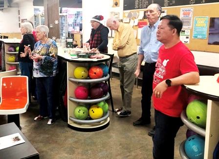 Snacks for bowling were provided by Marichu Torrijos and Peggy Oldfield. With so many bowlers, we had three lanes but on one of them, the ball return became problematic part way through the first game. One of the Grandview Lanes' staff members tried valiantly to resolve the problem but as it took some time, the team was moved to another lane to carry on.