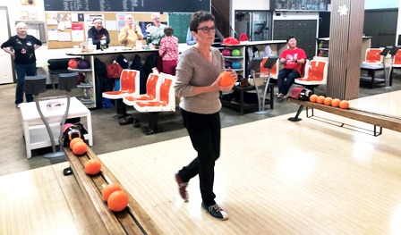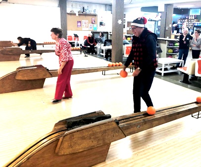 Lillian Hanson and Ding Torrijos take aim at the pins.