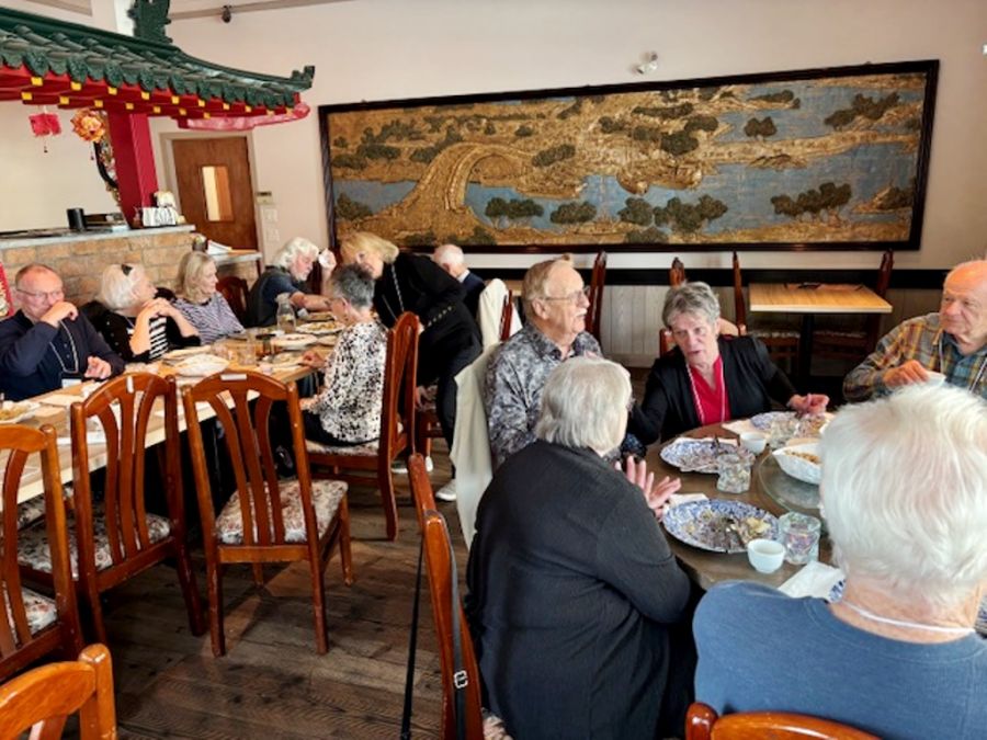 CBC Pensioners’ Association Fall Luncheon in Kelowna Oct 7, at Mr. Lu's Chinese Food Restaurant: John and Claire Smith, Terry and Richard Trager, Trevor Evans , Judi Grindlay, Neil Trainer