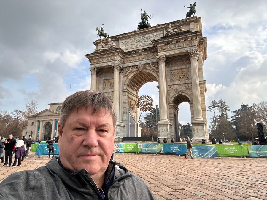 Bert Cervo (EventCare Consulting) in Milano Italy covering the 2026 Olympics while working for NBC Sports.